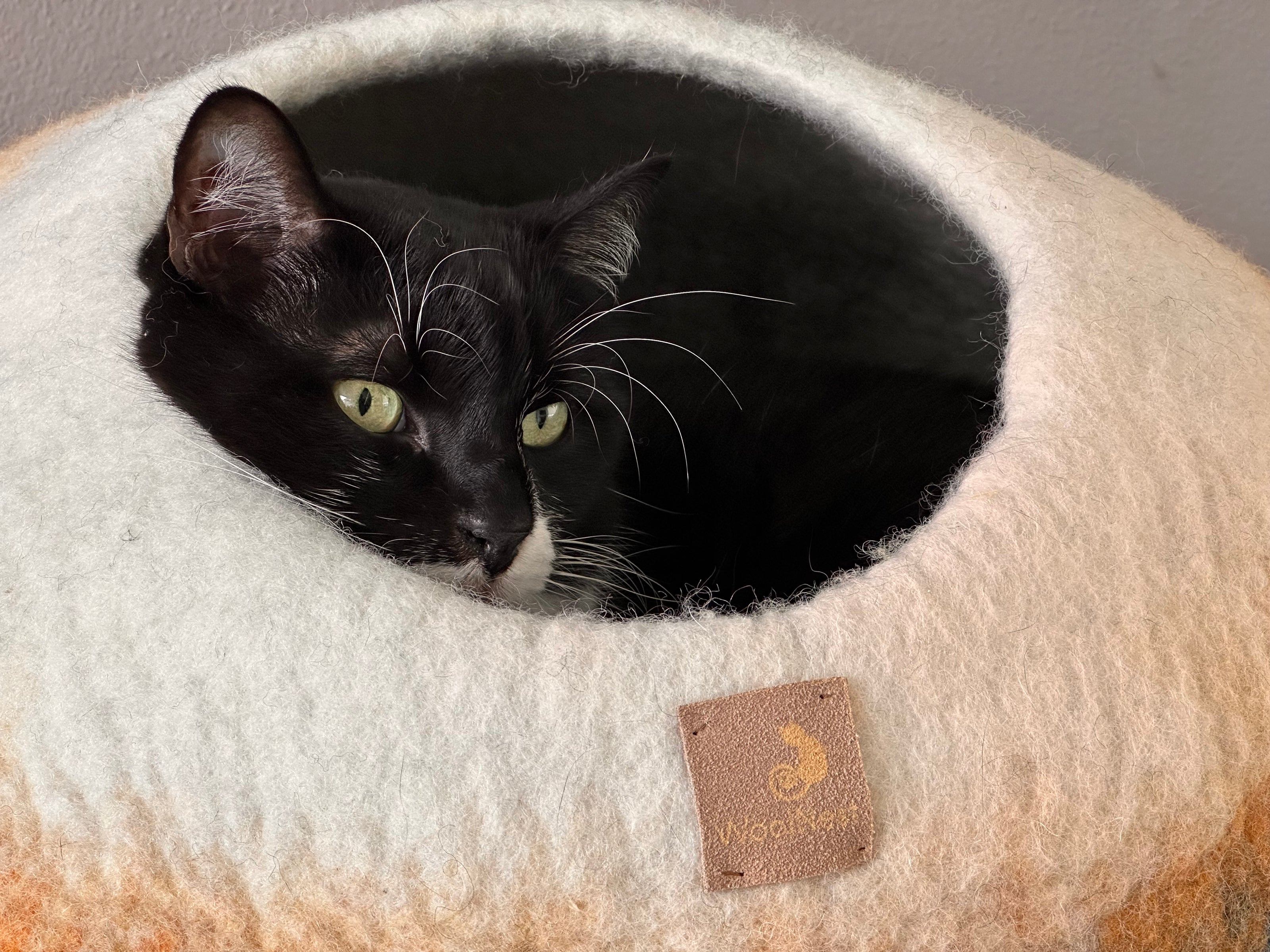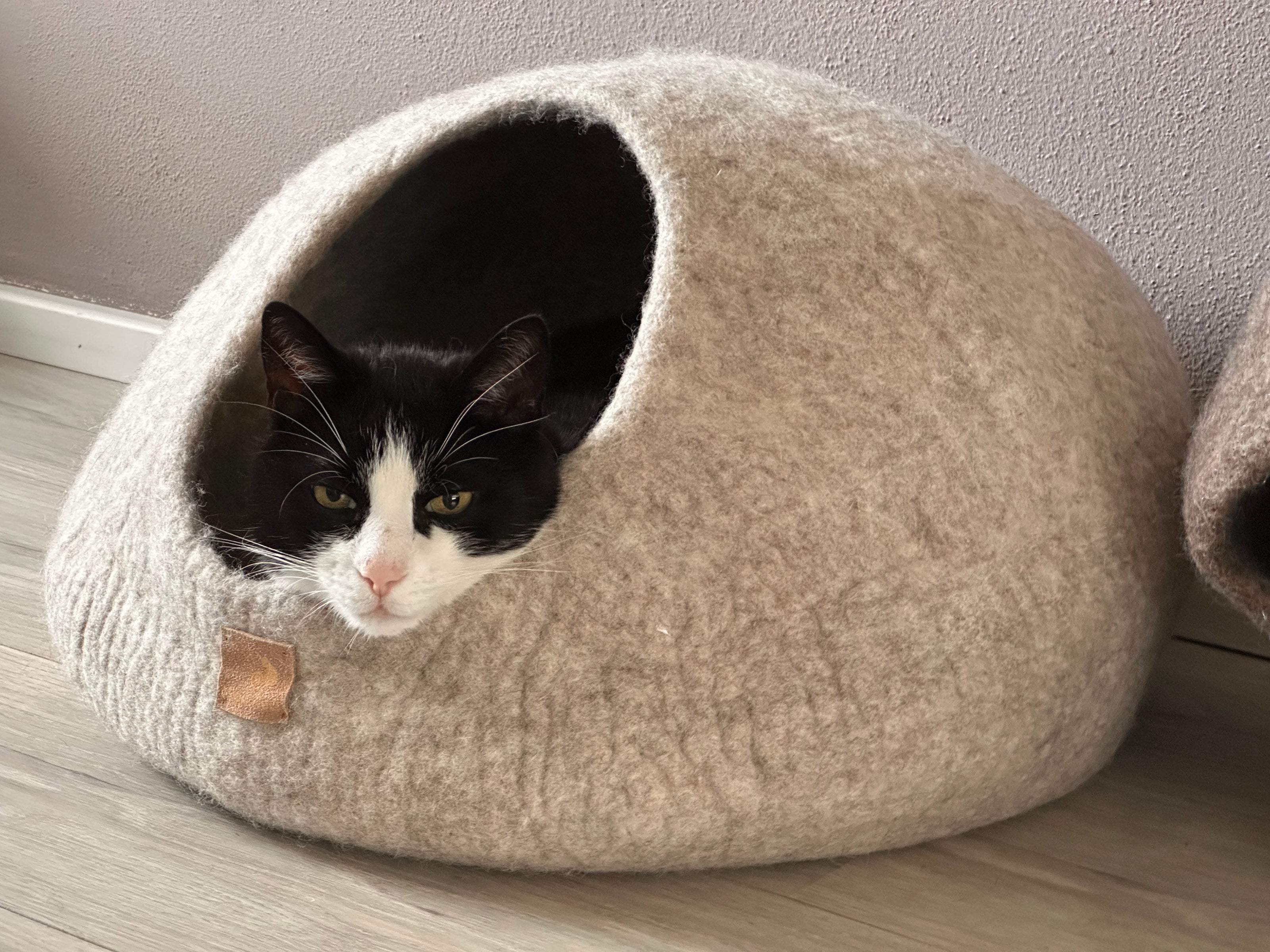 Katten zoeken instinctief een rustige, afgesloten plek wanneer ze rust nodig hebben. Een WoolNest creëert een kalme en veilige cocon. -